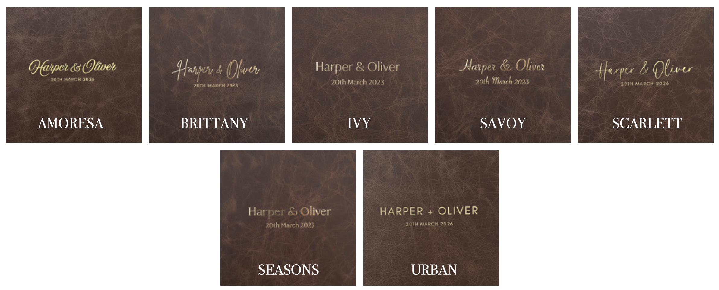 Velvet covers can only be embossed in special Gold, Silver, Rose Gold, Black and Red foils.